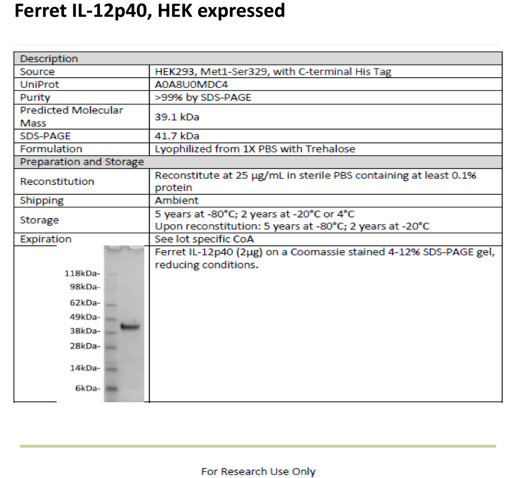 Recombinant Ferret IL-12 p40 Protein (HEK293)