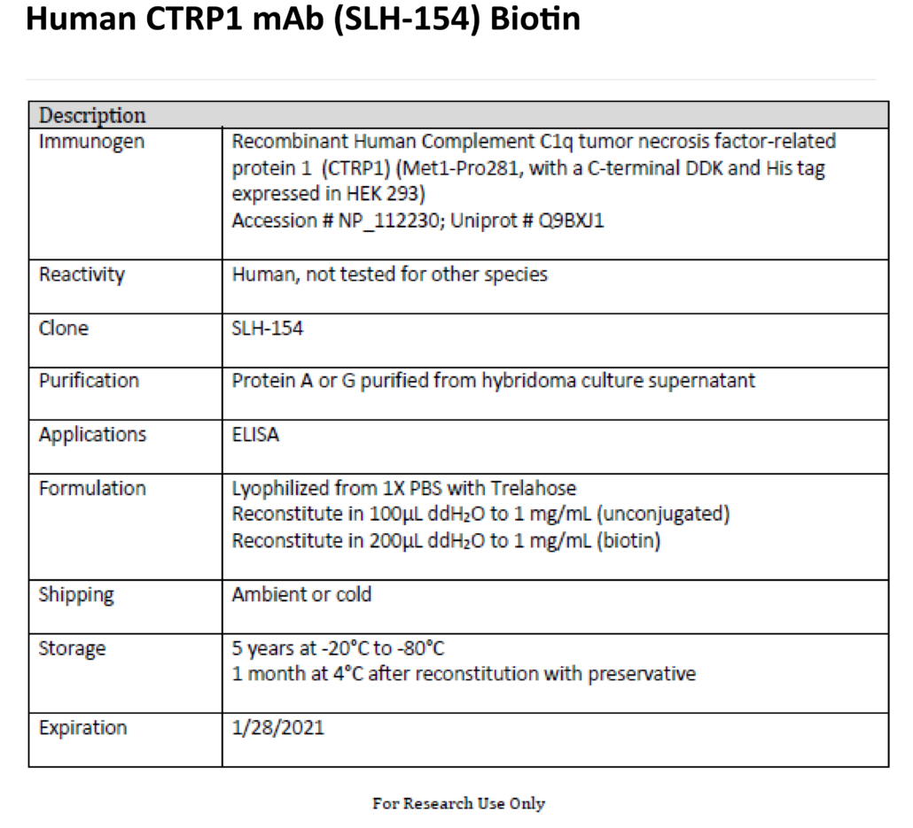 Human CTRP1 Monoclonal Antibody (SLH-154), biotin