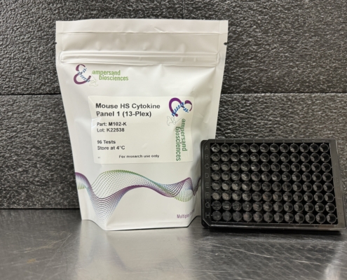 - Mouse High Sensitivity Cytokine Panel 1 Beads – Part # M102-B 1 vial containing 1.2 mL of beads coupled to capture antibodies for mouse cytokines in PBS with 0.1% BSA, 0.02% Tween 20 and 0.05% ProClin 300.